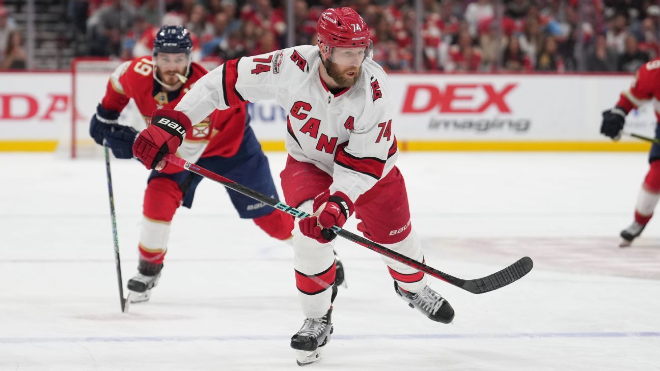 SUNRISE, Fla. – Carolina Hurricanes-verdediger Jacob Slavin verliet woensdag de Eastern Conference Finals in Game 4 vroeg in de eerste periode nadat hij een zware klap had gekregen van Florida Panthers-aanvaller Sam Bennett.